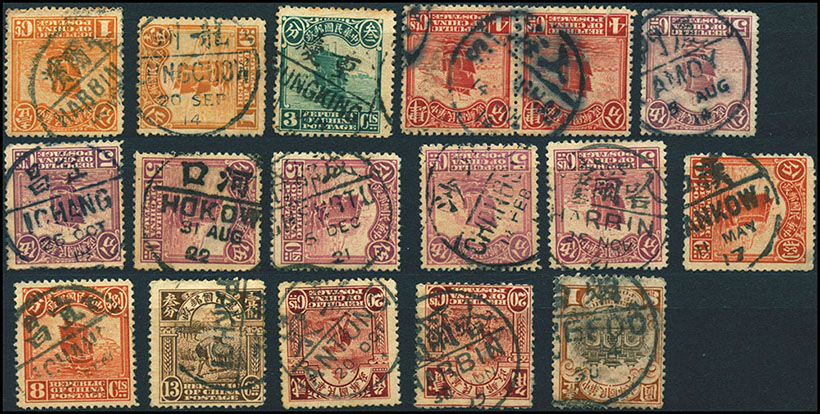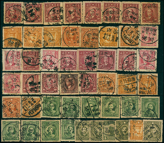 民國各版烈士及國父像舊票50枚,銷各式郵戳