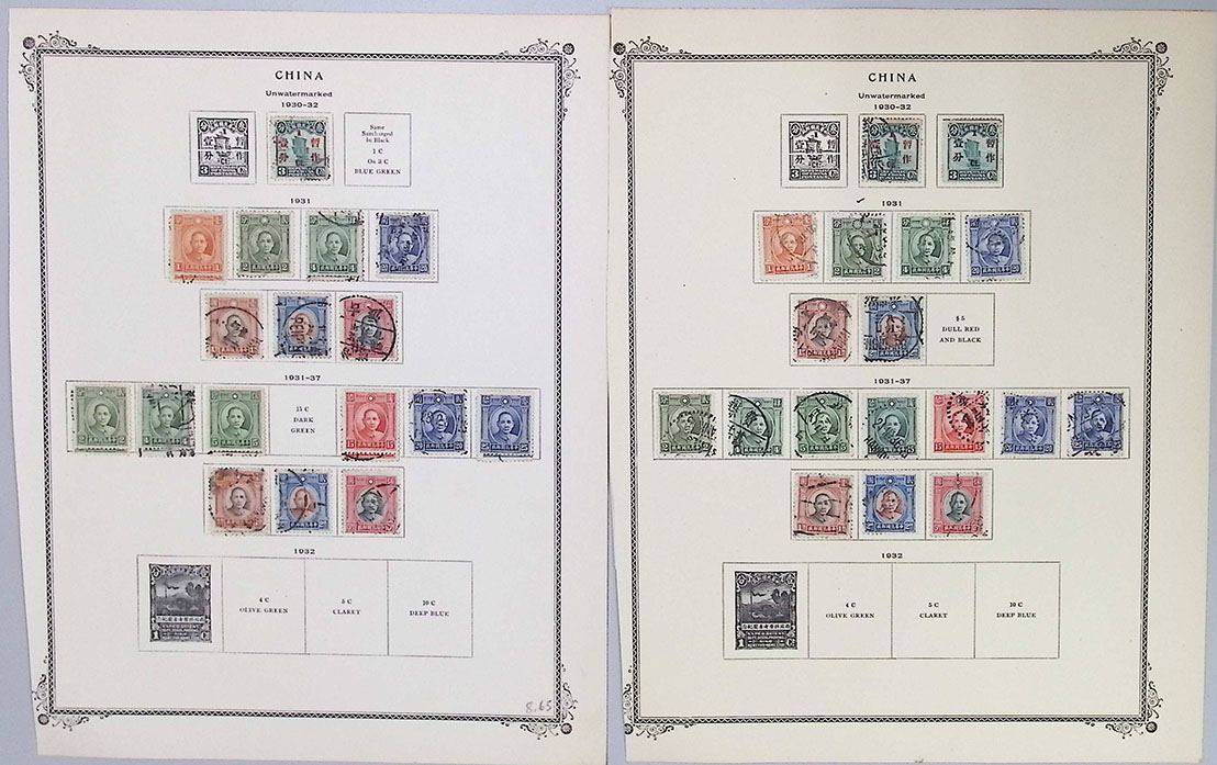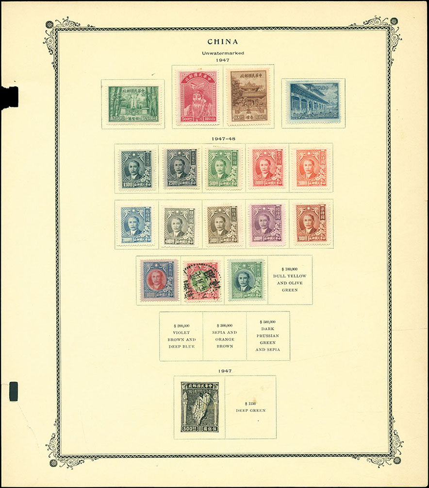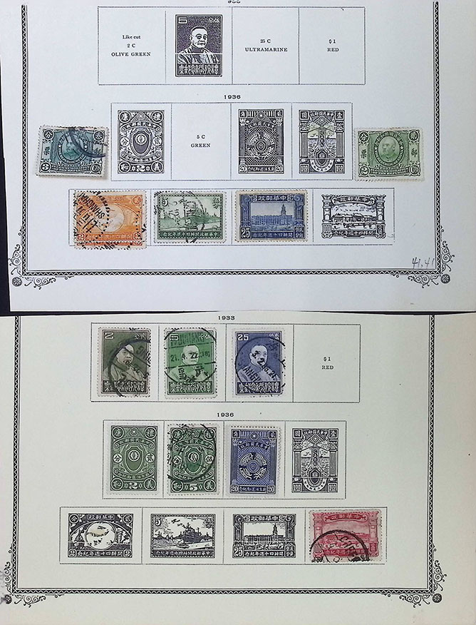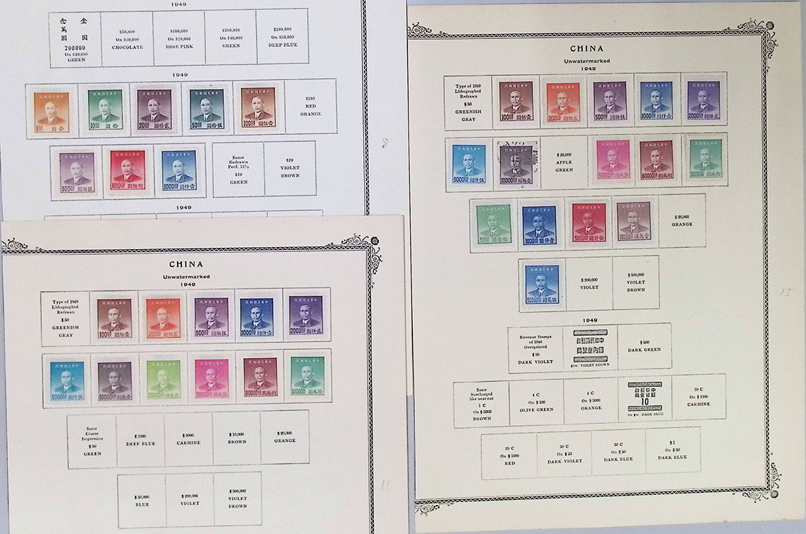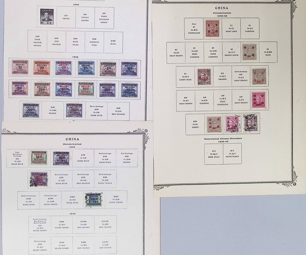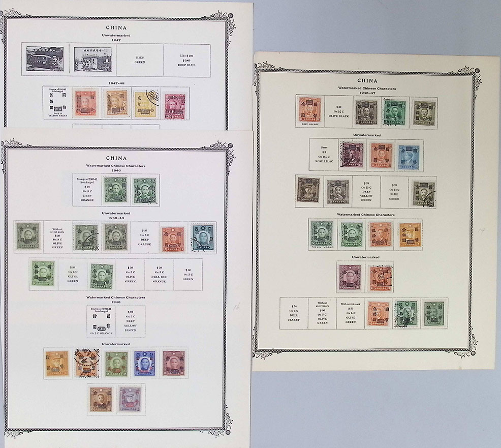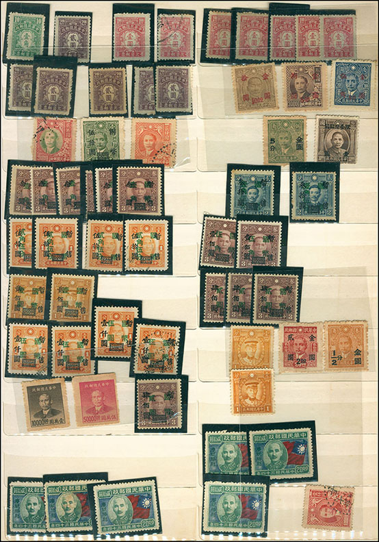 中型集郵冊一本,內插有民國新舊票約1000左右,以改國幣及改金元為主,郵商存貨,不計成本拋售,詳圖