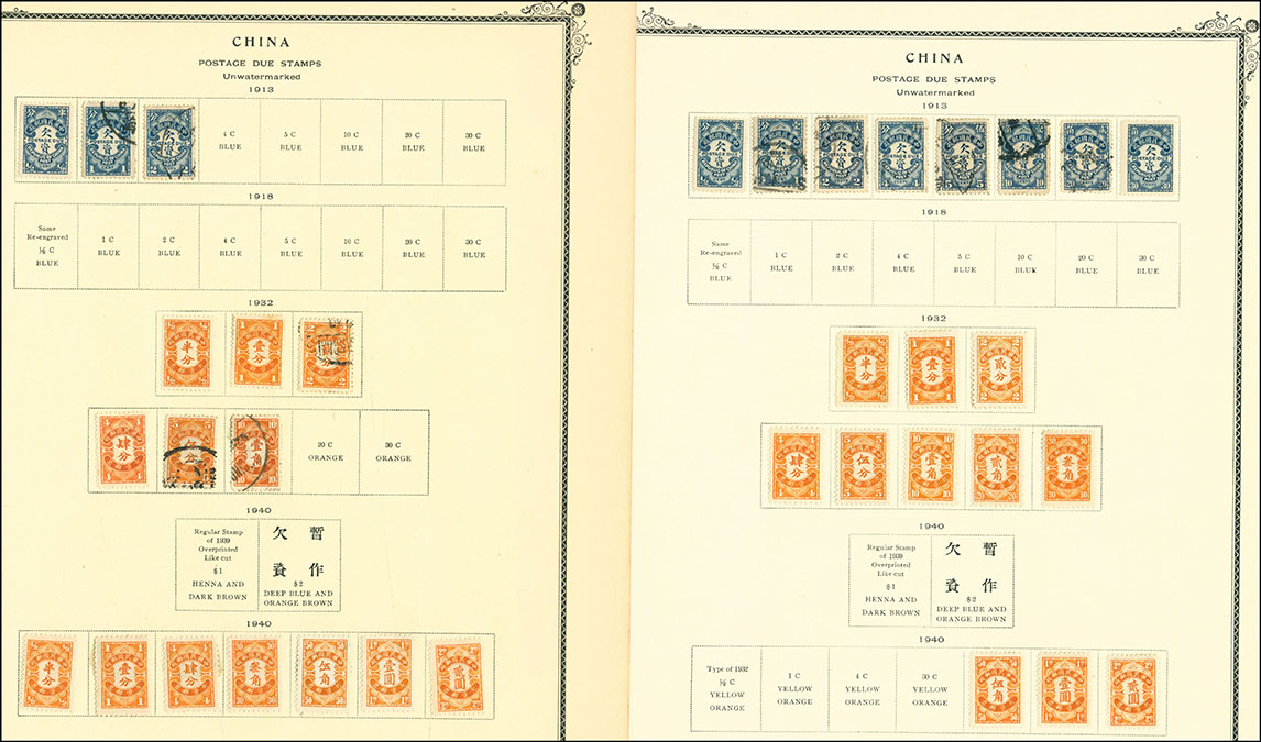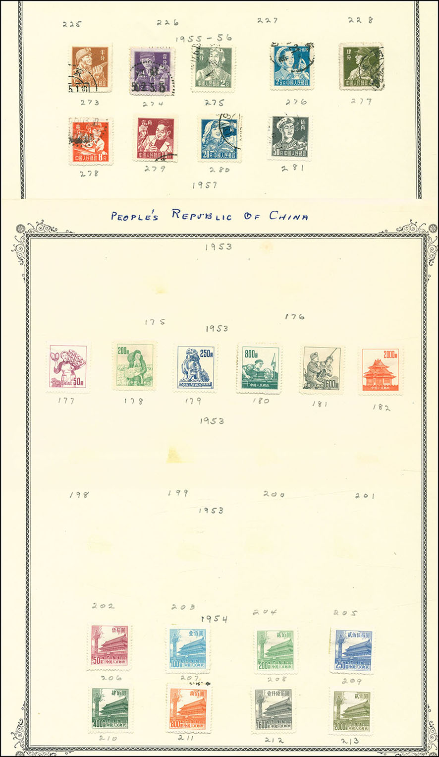 由國外回流之定位冊中取下5頁,上以膠水紙浮貼民國藍欠資起至中共紅欠資約85枚(種)