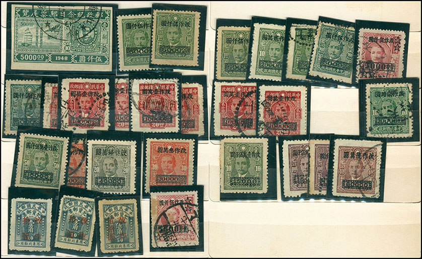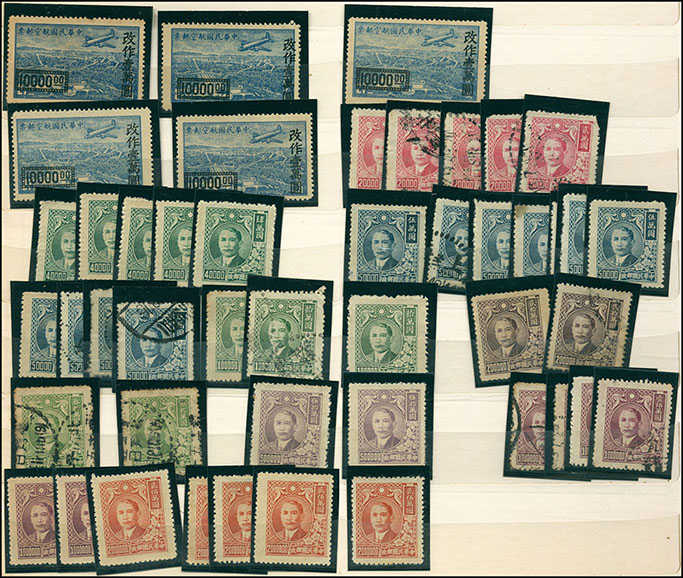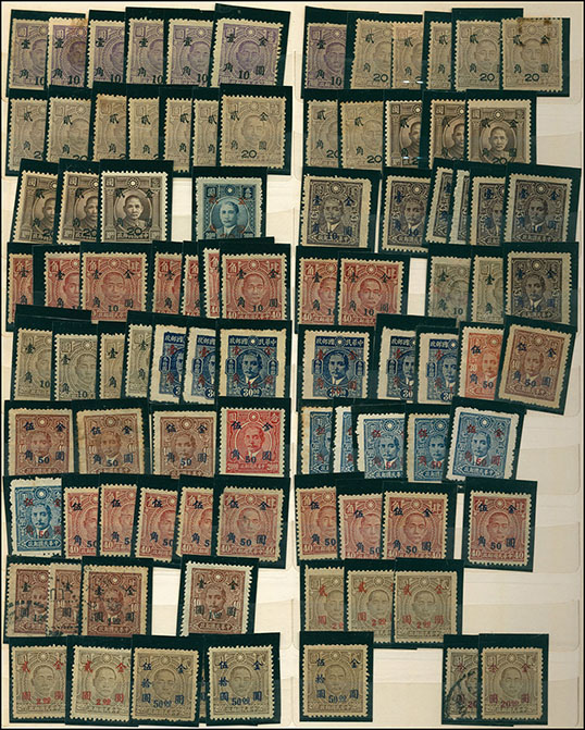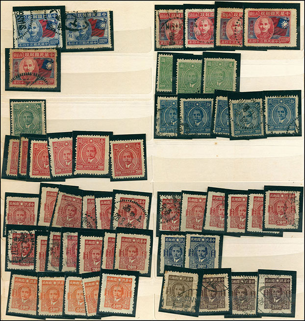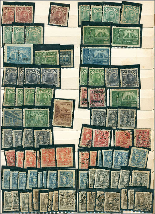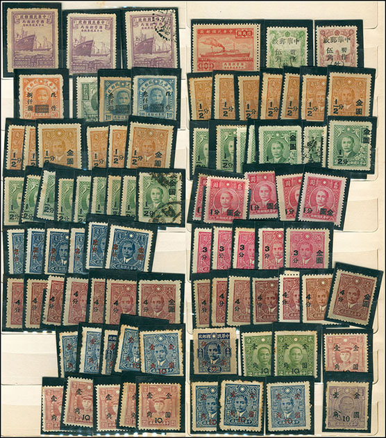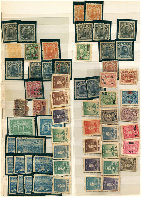 中型集郵冊一本,內插有民國新舊票約1000左右,以改國幣及改金元為主,郵商存貨,不計成本拋售,詳圖